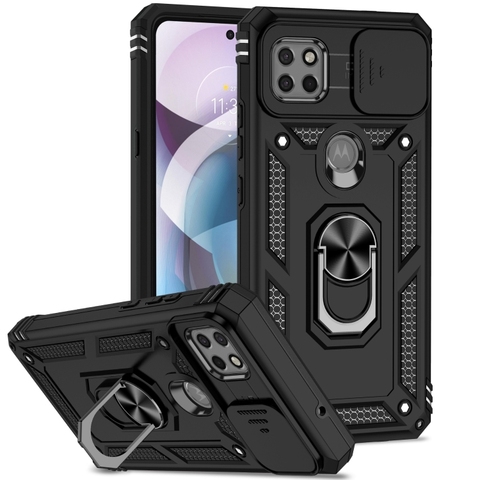 Motorola G 5G/One5Gエース用のリングキックスタンドとカメラカバーレンズ保護を備えたハイブリッドヘビーデューティー頑丈なケース